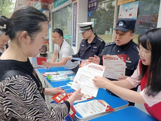 在同兴社区集中宣传点,工作人员向居民发放关于国家安全知识、网络安全、反邪教、反恐怖主义、森林防灭火、食品交通安全、反诈等相关宣传资料,并通过一对一讲解、有奖问答、赠送小礼品等方式,用通俗易懂的语言向辖区居民普及、讲解了在生活中常见的危害国家安全的行为。同时,告知居民一旦发现有损害国家安全的行为,可以拨打“12339”或登录国家安全举报受理平台进行举报。居民纷纷表示,社区开展相关普法宣传活动是十分必要的,通过了解相关的知识,能不断提升大家的防范意识。