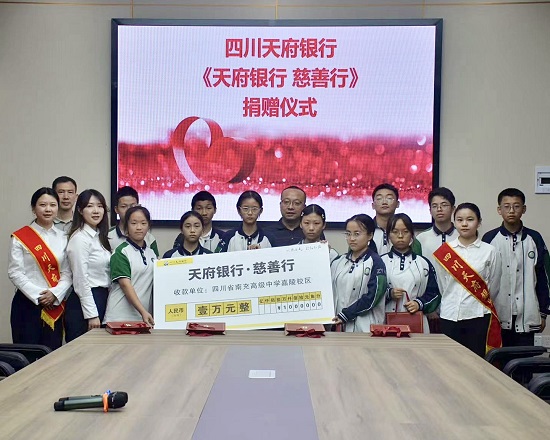 捐赠仪式上,四川天府银行营业部向四川省南充高级中学嘉陵校区20位困难学生捐赠助学金共10000元。四川天府银行金泉支行行长助理张莲花表示:“教育是民族振兴的基石,天府银行始终将支持教育事业作为公益事业的核心。此次捐赠不仅是对学子经济上的支持,更是对他们精神上的鼓舞,希望同学们能心怀感恩、奋发图强,未来回馈社会。”