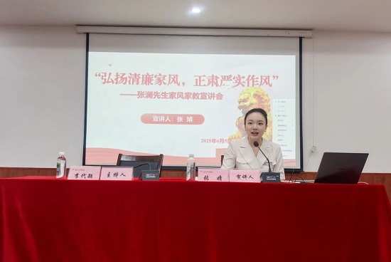 会议邀请到张澜纪念馆宣讲员张婧同志做专题宣讲。深入解读著名民主革命家、教育家张澜先生的家风故事与清廉品格,通过其“耕读传家、清廉为本”的家风内核及“人不可以不自爱,不可以不自修,不可以不自尊,不可以不自强,断不可以自欺”的箴言教导等内容,让参会人员感受到优良家风对个人、家庭和社会风气的深远影响,引导大家自觉以良好家风涵养清风正气,将廉洁要求融入工作生活各环节,做到“律己守廉、从严治家、以德传世”。