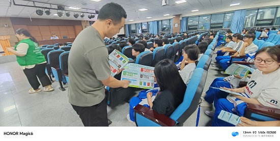 在环保宣传中,工作人员则以“爱护生态环境,共筑绿色家园”为主题,结合学生的生活阅历和知识储备实际,从大气、水、土壤污染的产生、治理措施等方面,讲解保护生态环境的重要性以及破坏生态环境带给我们的影响,通过对垃圾的讲解,让学生更加深刻了解垃圾对生态环境带来的危害以及如何进行分类、分类的意义,呼吁学生在日常学习和生活中积极参与到垃圾分类的环境保护中,并带动家人参与其中。