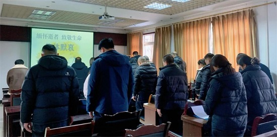 活动伊始,全体职工整齐肃立。主持人在致辞中表示:“今天我们送别了多位逝者。他们曾是岁月的行者,如今归于安宁。让我们以静默寄托哀思,致以深切缅怀。”随后,现场全体人员默哀一分钟,以无声的方式传递对生命的敬畏。