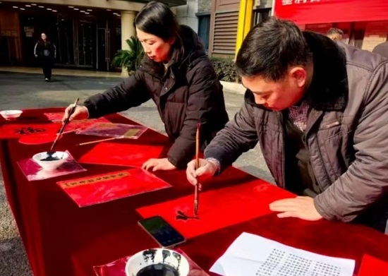 市民们热情高涨,书法家们应接不暇却笑意盈盈。“写的是书法,送的是祝福。”一位书法家边写边说,“看到大家拿着春联开心的样子,我们也觉得特别有意义。”