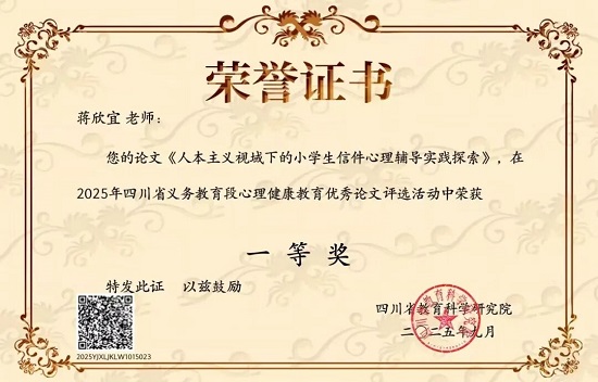 在“灵趣童年 美力人生”的办学理念引领下,城北小学高度重视心理健康教育工作,扎实推进心育课程建设与活动开展,积极营造温暖包容、健康向上的校园氛围。此次获奖不仅是教师个人专业能力的体现,更是学校心理健康教育工作的成果缩影。未来,学校将以此为契机,继续深耕心育领域,深化实践探索,助力每一位师生身心和谐发展,为孩子的成长赋能,为学校的教育增彩。