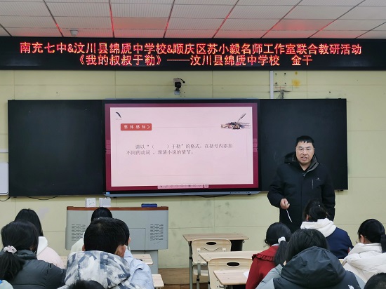 12月26日上午,根据活动安排,首先开展语文教学联合研讨活动。绵虒中学语文教师金干与顺庆区苏小毅名教师工作室成员卢彦蓉老师围绕九年级上册《我的叔叔于勒》一课进行同课异构。金老师以情节梳理、人物分析与写法探究为脉络,通过多元问题探究、文本细读与跨文勾连,贴合新课标理念。卢老师的课堂以剧本杀形式,借二姐夫侦探视角,引导学生圈点文本、推理探究,在沉浸式体验中落实语文核心素养。两堂课均获得在场师生的一致好评。