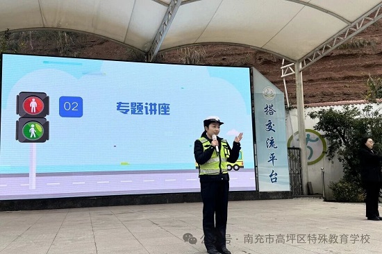 为进一步增强全校师生及家长的交通安全意识,提升特殊学生在交通环境中的风险防范与自我保护能力,构建“家校警”协同联动的安全防护网,1月14日上午,高坪特校在操场组织开展了一场生动实用的交通安全专题讲座。