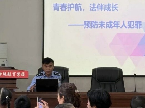 为深化平安校园建设,筑牢青少年法治安全防线,4月17日上午,高坪特校特邀学校法治副校长、清溪派出所所长何学平带领普法团队,为全体师生带来“青春护航 法伴成长”法治教育专题讲座。活动由学校党支部专职副书记王志进主持,通过“理论宣讲+案例剖析+互动问答”的沉浸式普法模式,为特殊儿童群体撑起法治保护伞。