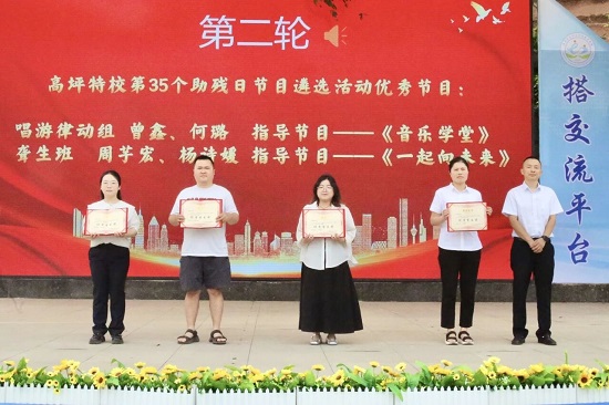 活动中,学校表彰了2025年助残日节目获奖指导教师及在轮滑邀请赛和田径比赛中获奖的学生,领导们颁发奖状和奖金,肯定师生们的努力。