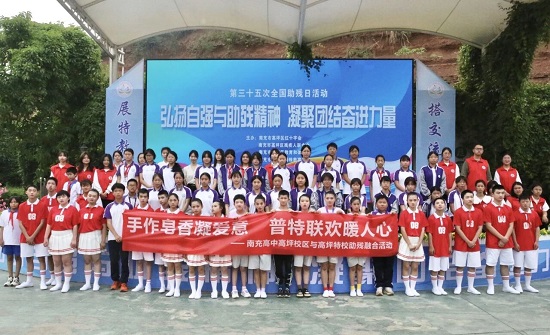 在第35个全国助残日到来之际,5月16日上午,高坪区特殊教育学校以“弘扬自强与助残精神,凝聚团结奋进力量”为主题,温情举办了助残日系列活动。区红十字会常务副会长杨安杰、高坪区教体局副局长蒋双全、南充临江东方建设集团工会主席易繁、区残联副理事长高中权及南充高中高坪校区、高坪志愿者协会、川北医学院麻醉学系等爱心人士齐聚一堂,用行动传递温暖,用爱心点亮梦想。
