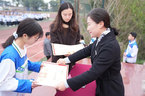执行校长张莉梅发表热情洋溢的致辞。她简要回顾了过去一年学校在教育教学质量提升、办学条件改善等方面取得的成绩,特别肯定食堂收回自主经营对于全力守护师生“舌尖上的幸福”的意义。她殷切寄语全体同学:一要拥抱时代,在独立思考中守护本真;二要奔赴山海,以脚踏实地的步履奔赴星辰大海;三要礼润芳华,让崇德尚礼成为龙中学子最动人的气质。