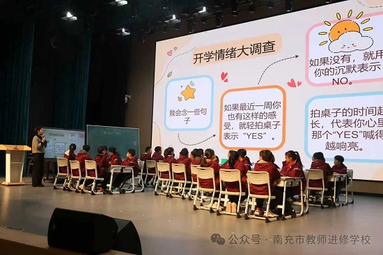 活动的核心环节,南充市五星教育集团育英校区心理教师艾玉婷带来了开学心理健康调适示范课。