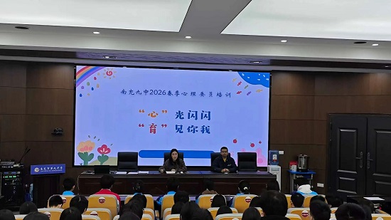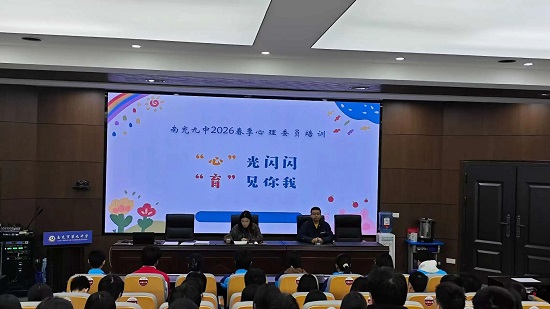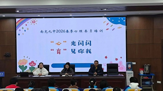 为进一步加强学校心理健康教育工作,提升班级心理委员的专业素养和服务意识,我校在学校党总支的领导下,于2026年3月19日上午在学校学术厅召开“南充九中2026年春季心理委员培训会”。南充九中副校长谭了出席会议并讲话,心理专职教师袁诗洁为全体心理委员进行培训,本次会议由政教处主任蒙艺主持。