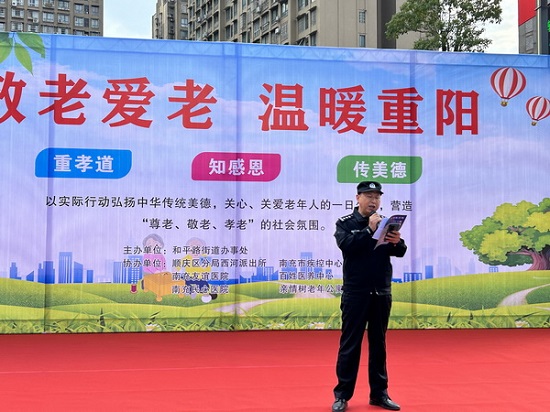 2023年10月20日,为弘扬中华民族尊老敬老的传统美德,在第十一个“老年节”来临之际,四川省南充市顺庆区和平路街道办事处联合南充市疾控中心、区公安分局西河派出所、辖区的医养机构在和平路街道欣园公园开展了“敬老爱老·温暖重阳”主题活动。